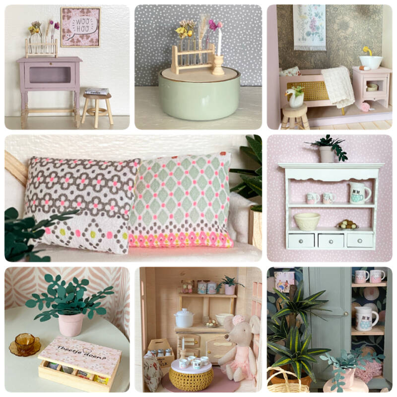 Welcome to the Sweet Tiny Houses website. In my webshop you will find furniture and accessories to decorate your own dollhouse. I really love pastel shades in combination with bare wood. These colors make me feel happy and cozy right away. You will see this combination regularly in my webshop. In my own dollhouses I like to move around with the interior and switch with accessories. A kind of miniature interior stylist, so to speak... I hope that my website gives you inspiration to get started decorating your own dollhouse. Unfortunately my website is only in Dutch but if you have any questions feel free to contact me.