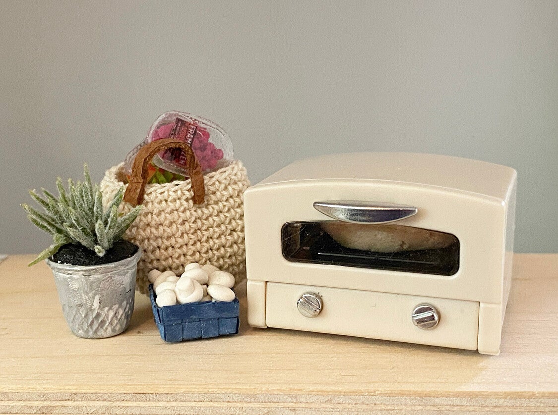 Hoe leuk is dit kleine oventje. Voor al je poppenhuis taartjes, pizza's of broodjes. schaal 1:12. Verkrijgbaar in de kleuren; crème, mintgroen en zwart.