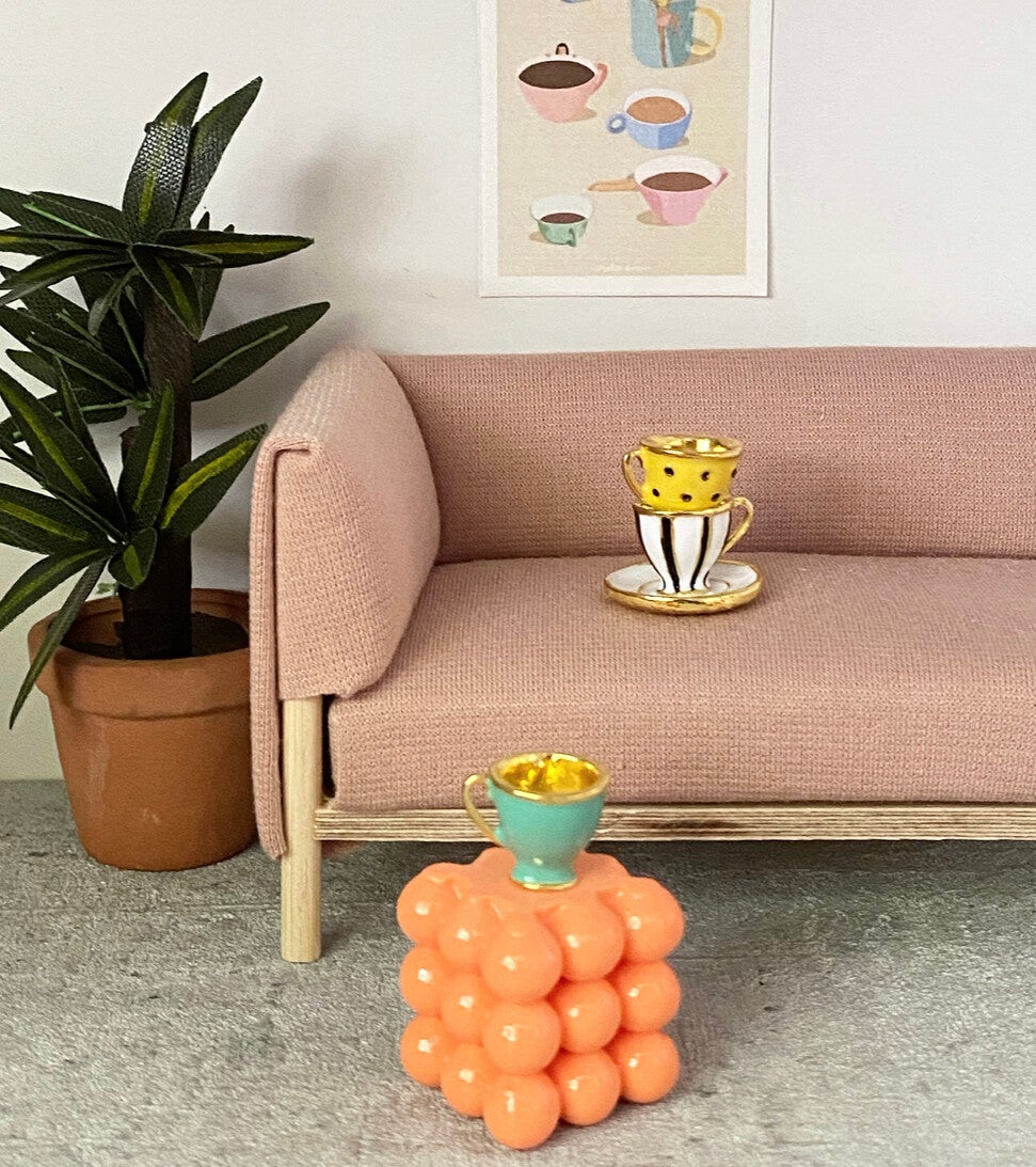 Gave kubus bijzettafel in moderne frisse kleuren inclusief rond houten blad. Om verliefd op te worden. Daar is altijd wel een plekje voor in je poppenhuis! Het houten blad zit er los bij want ook zonder blad is het een heel leuk tafeltje.