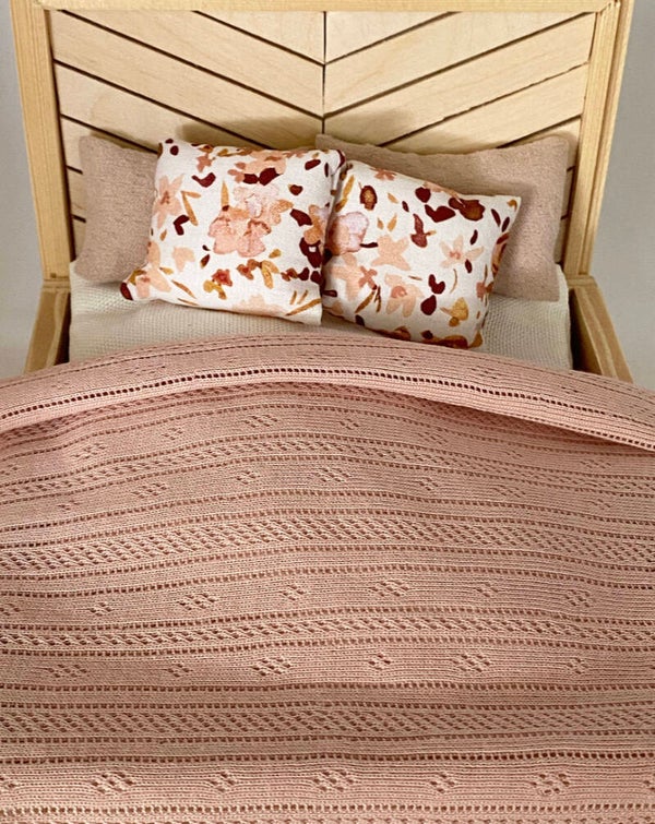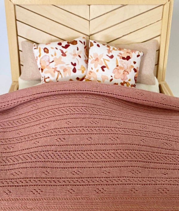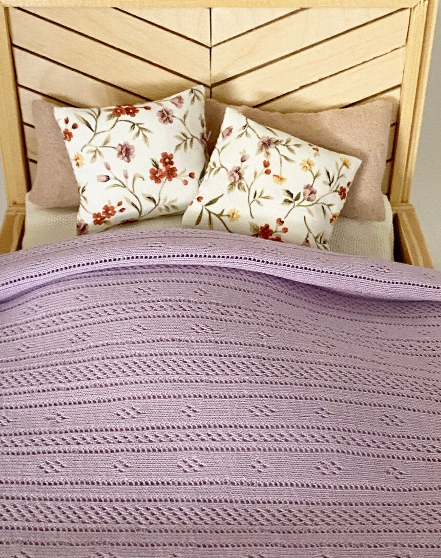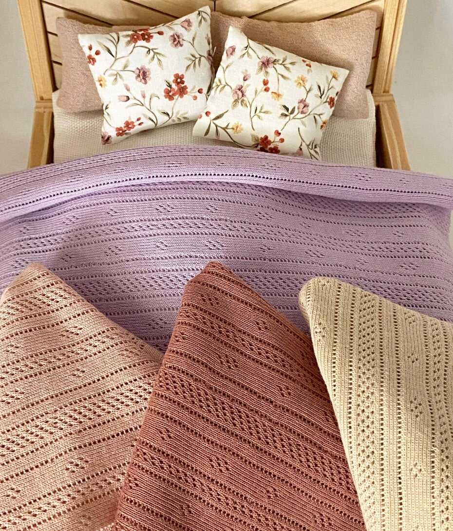 Deze deken met ajour motief is gemaakt van hele soepele tricot. Hij is verkrijgbaar in 4 kleuren. Niet alleen leuk om als deken of sprei op het bed te gebruiken maar ook als plaid op een stoel of bank. De afmetingen zijn 16.5 x 18cm.