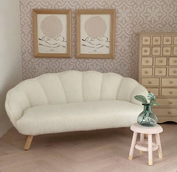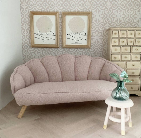 Deze fantastisch mooie sofa's zijn gemaakt en ontworpen door Joanna en een plaatje in je poppenhuis. Ik ben heel blij dat ze nu verkrijgbaar zijn in mijn webshop. Hij is verkrijgbaar in 3 kleuren. De stof is heerlijk zacht en qua stijl en vorm past hij in zowel een modern poppenhuis als in combinatie met de Maileg muisjes.