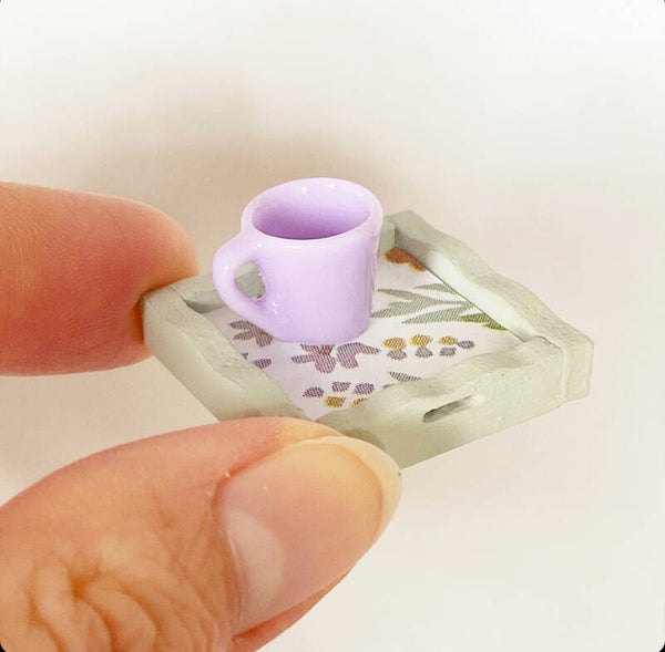 Dit kleine dienblad met bloemetjes decor is verkrijgbaar in mintgroen en zachtroze. Het bloemetjes decor kan per dienblad iets verschillend zijn omdat het handwerk is. De afmetingen zijn 3x3 cm.