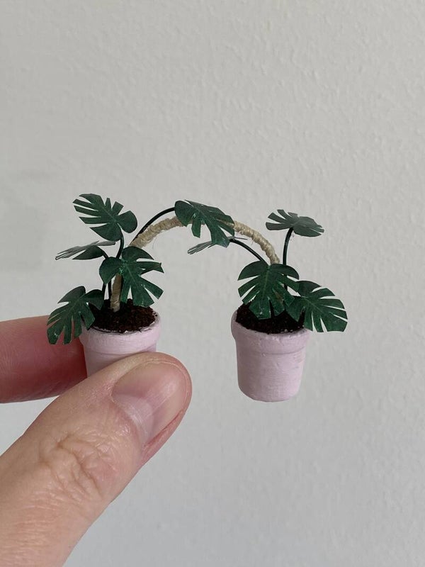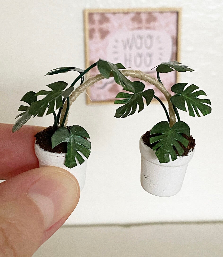 Monstera boogplantje. Dit plantje is handgemaakt. Superleuk om met dit plantje meer groen in je poppenhuis te brengen.