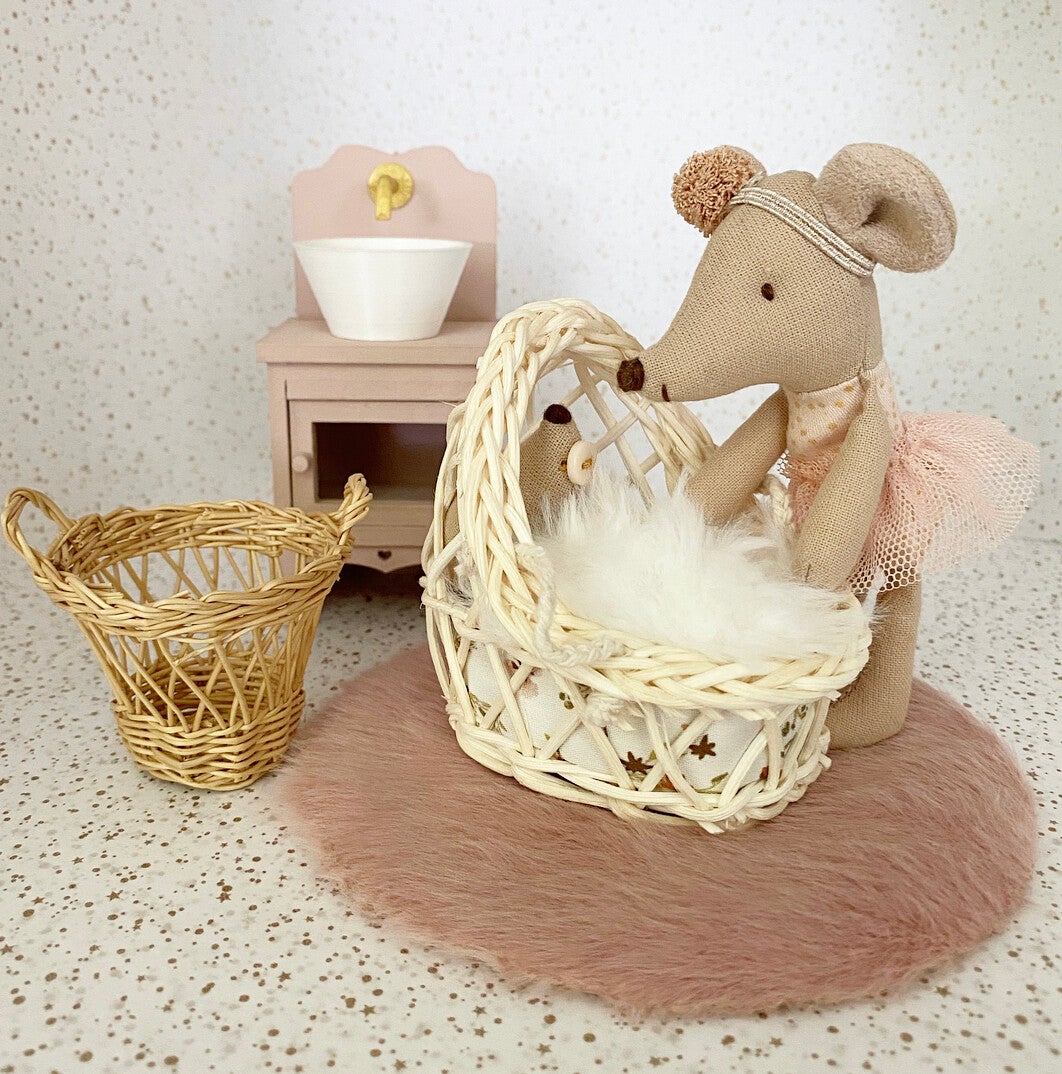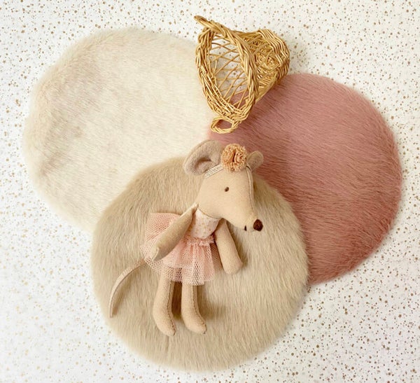 Superzacht rond vloerkleed voor in het poppenhuis. Ook leuk te gebruiken als deken. verkrijgbaar in de kleuren; Crème, Camel en Oudroze.