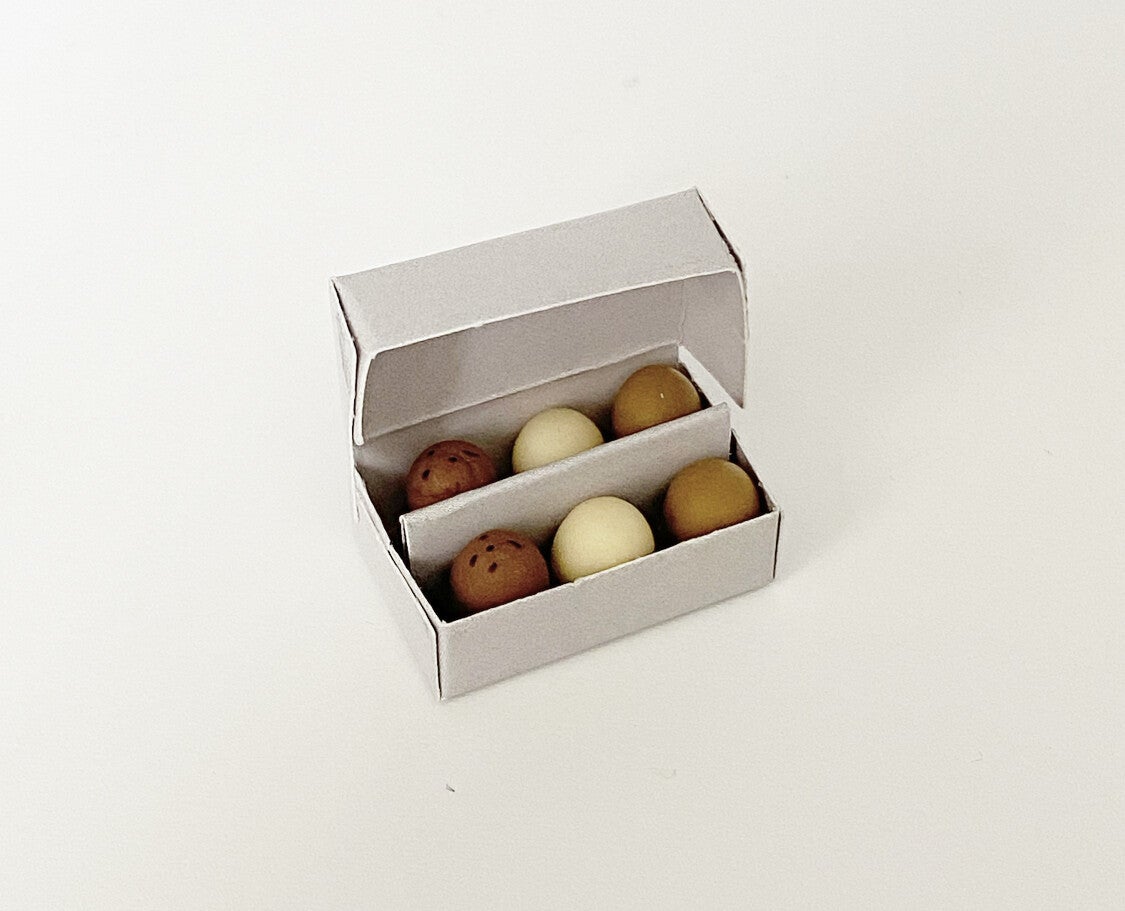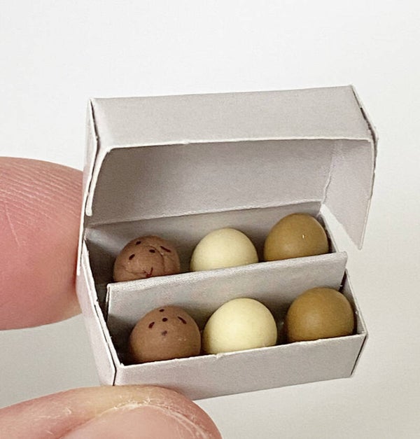 Lief doosje met 6 eieren. Het doosje kan open en dicht gedaan worden.