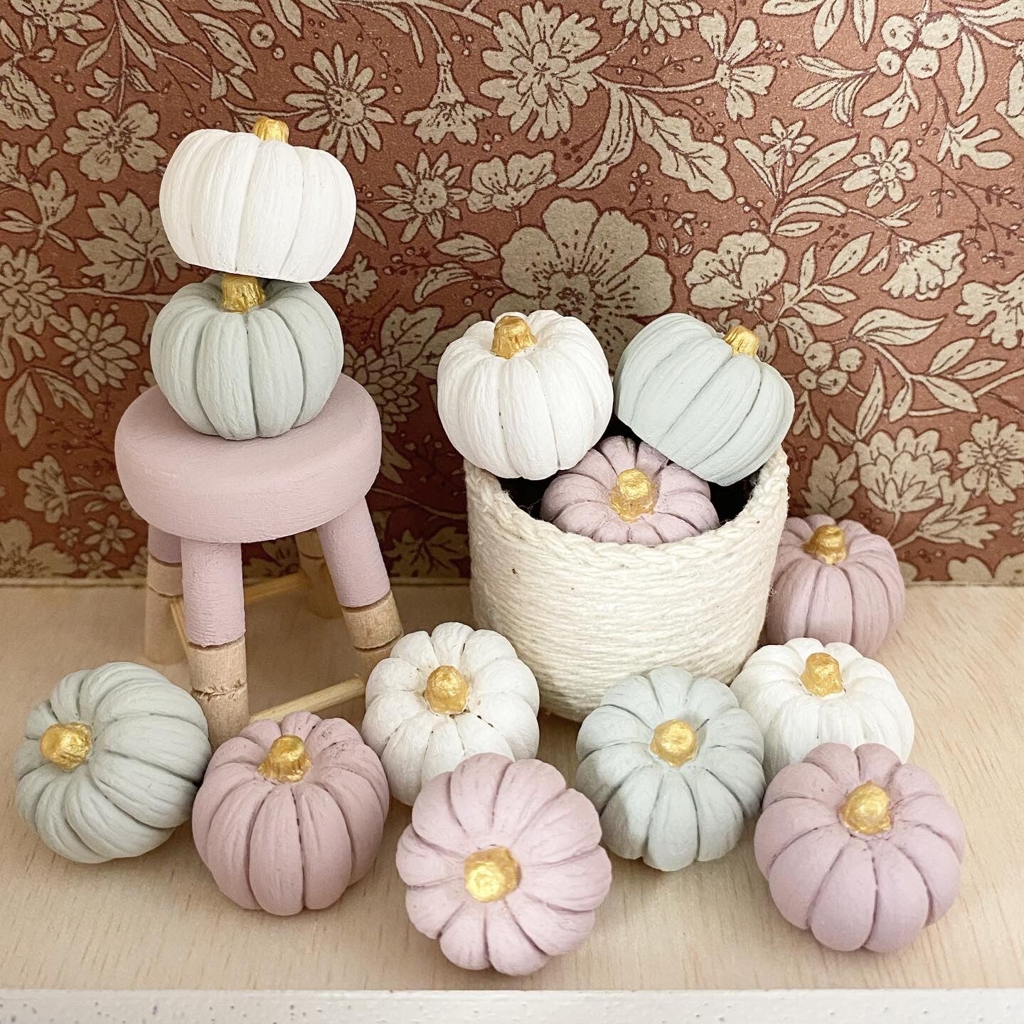 Deze lieve pompoen is verkrijgbaar in 4 pasteltinten. Leuk als decoratie in een sprookjesachtige setting of als herfstdecoratie in het poppenhuis.