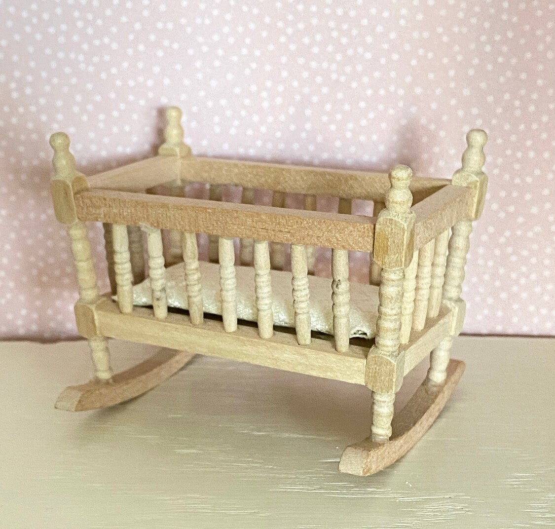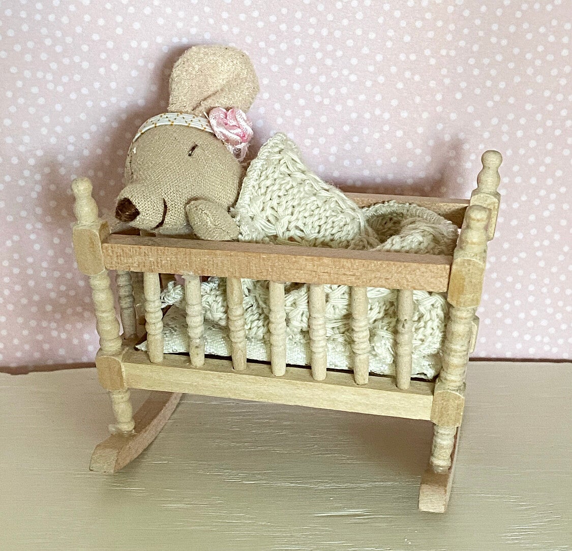 Klein schommel wiegje van blank hout. Exclusief matrasje.