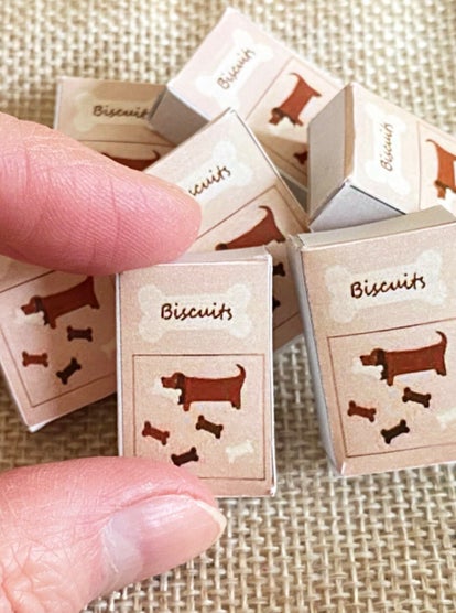 Doosje hondenkoekjes voor je kleine poppenhuis hondje. Het doosje is niet gevuld.
