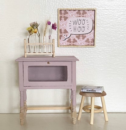Hoe leuk is deze schattige lamp. Hij heeft een kap met bloemenprint en afhankelijk van de grootte van je poppenhuis kun je hem als tafellamp of staande lamp gebruiken.